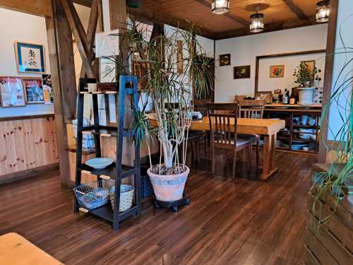 木をいっぱい使った店内