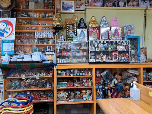 店内は、噂には聞いていましたが賑やかですねー 漫画もいっぱいあるし、いろんなキャラクターグッズがひしめいております!