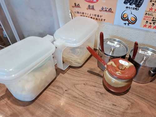 テーブルには薬味が各種