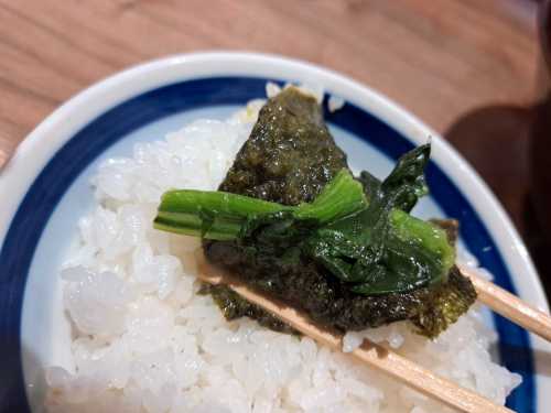 スープに浸した海苔でご飯を食べると美味しい〜