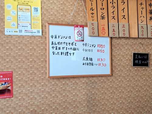 メニューです もうね、価格高騰でどんどんお値段が変わるから、けっこう張り紙してますね(笑)