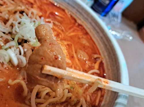 全体に、辛いわりには食べやすいですねー。インスタントラーメンで例えるなら「辛ラーメン」みたいな感じ