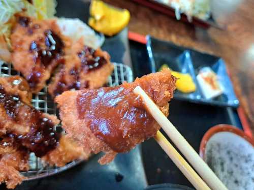このお店のとんかつはデミグラスソースみたいのが上にかかっているタイプ